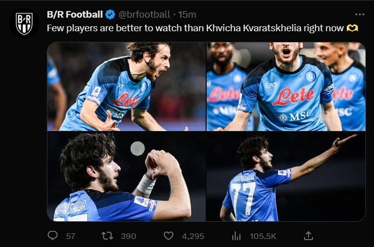 "ხვიჩა კვარაცხელიაზე სასიამოვნო საყურებელი მსოფლიოში ძალიან ცოტა ფეხბურთელი თუ არსებობს.", - წერია პოსტში.