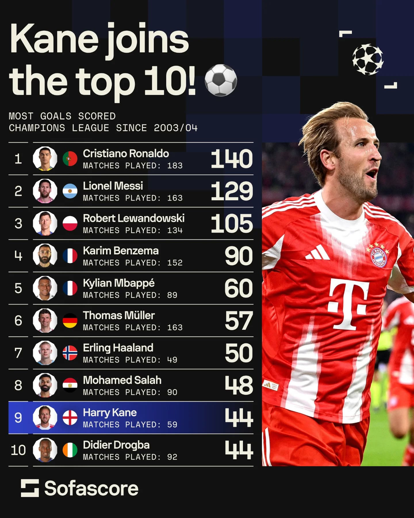 ჩემპიონთა ლიგის ბომბარდირები — კეინი ყველა დროის საუკეთესო ათეულში შევიდა